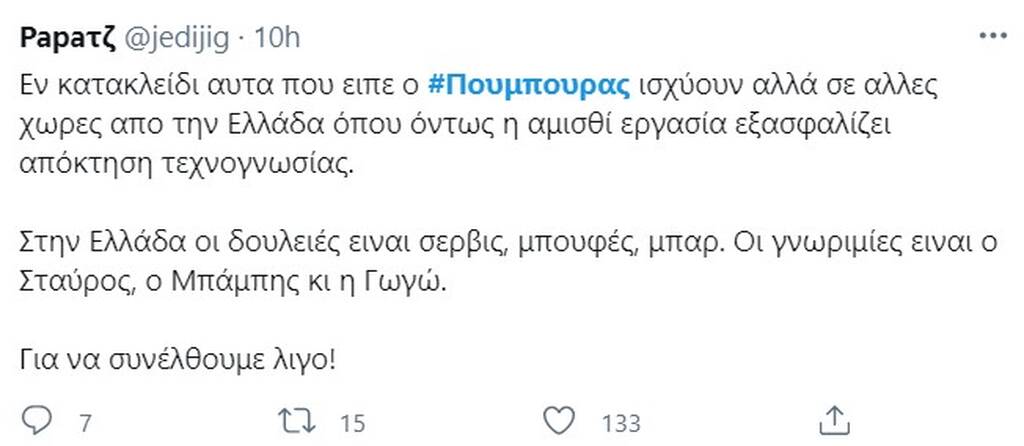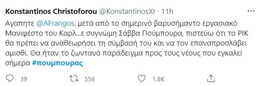 Οι δηλώσεις όμως αυτές του Σάββα Πούμπουρα προκάλεσε αντιδράσεις σε πολλούς χρήστες του Twitter οι οποίοι δεν ενστερνίστηκαν αυτήν του την άποψη.