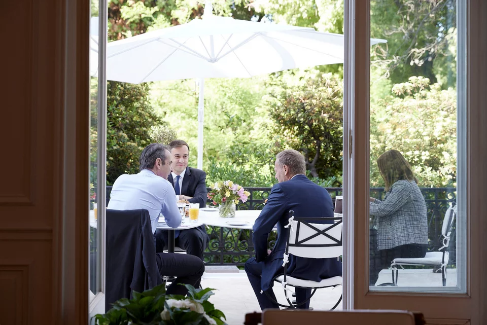 Πρόγευμα εργασίας στο Μέγαρο Μαξίμου με τον Πρόεδρο του Ευρωπαϊκού Λαϊκού Κόμματος (ΕΛΚ) Donald Tusk είχε σήμερα το πρωί ο Κυριάκος Μητσοτάκης.
