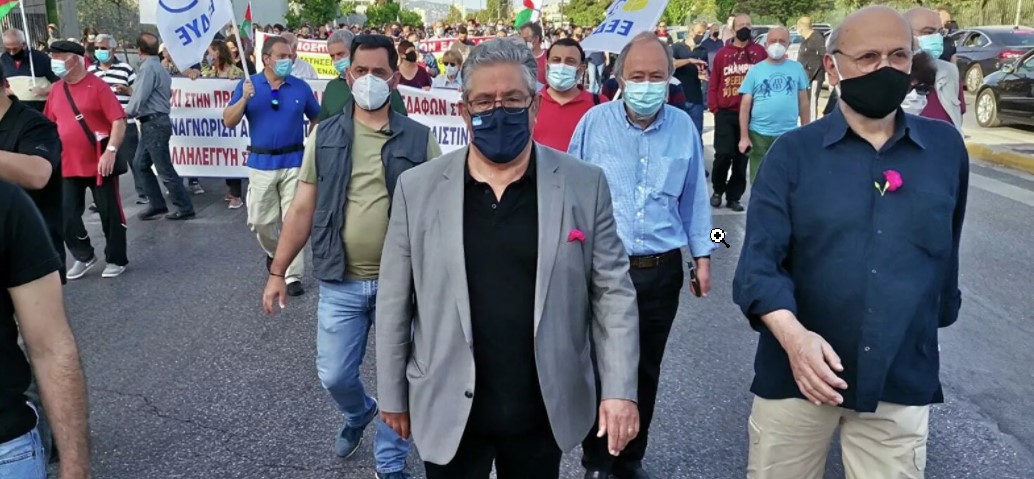 «Είμαστε εδώ για να εκφράσουμε την αλληλεγγύη μας στον σκληρά δοκιμαζόμενο Παλαιστινιακό λαό από τις εγκληματικές επιθέσεις του Ισραήλ που γίνονται με τις πλάτες των Αμερικανών, του ΝΑΤΟ, της ΕΕ.