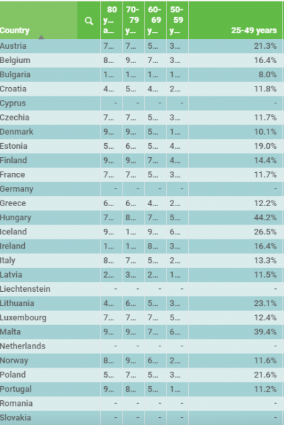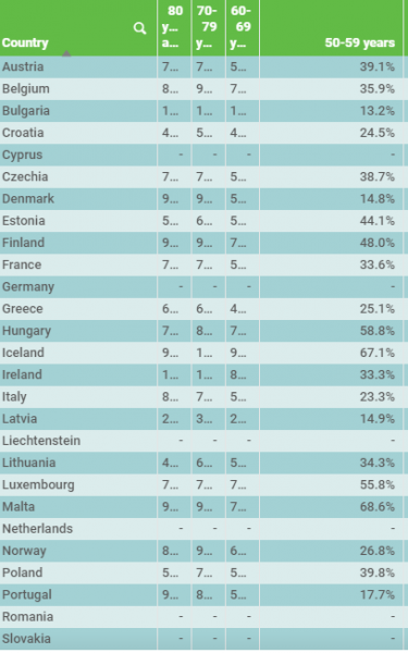 Τέλος αν και αυξάνονται αρκετά τα ποσοστά στους νέους, μέχρι στιγμής το ποσοστό για τους 25 έως 49 ετών είναι κάτι παραπάνω από 12%. Παραθέτουμε τον σχετικό πίνακα του ECDC (είναι από τις 13/5).