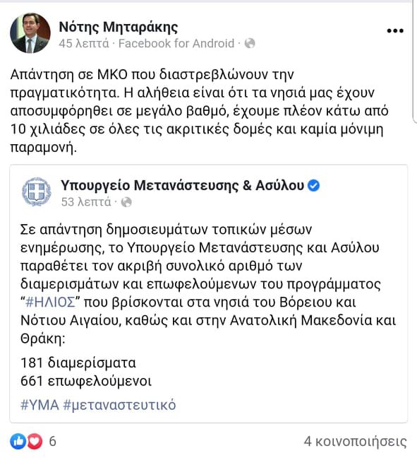 Μετά από την ευρεία αναδημοσίευση στα ΜΜΕ του δελτίου τύπου της Παγχιακής Επιτροπής ΑΓΩΝΑ για το πρόγραμμα HELIOS, ο κ.Μηταράκης αναγκάστηκε μετά από 4 ημέρες εκκωφαντικής σιωπής με ανάρτησή του να δώσει μία άκρως σιβυλλική απάντηση για 661 επωφελούμενους και 181 διαμερίσματα του προγράμματος, για τα νησιά του Βόρειου- Νότιου Αιγαίου και τη Θράκη.