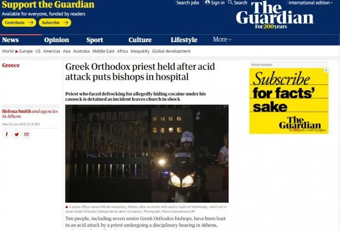 Το γύρο του κόσμου κάνει η είδηση της πρωτοφανούς επίθεσης με βιτριόλι σε βάρος 7 κληρικών και 3 λαϊκών στην Μονή Πετράκη.
