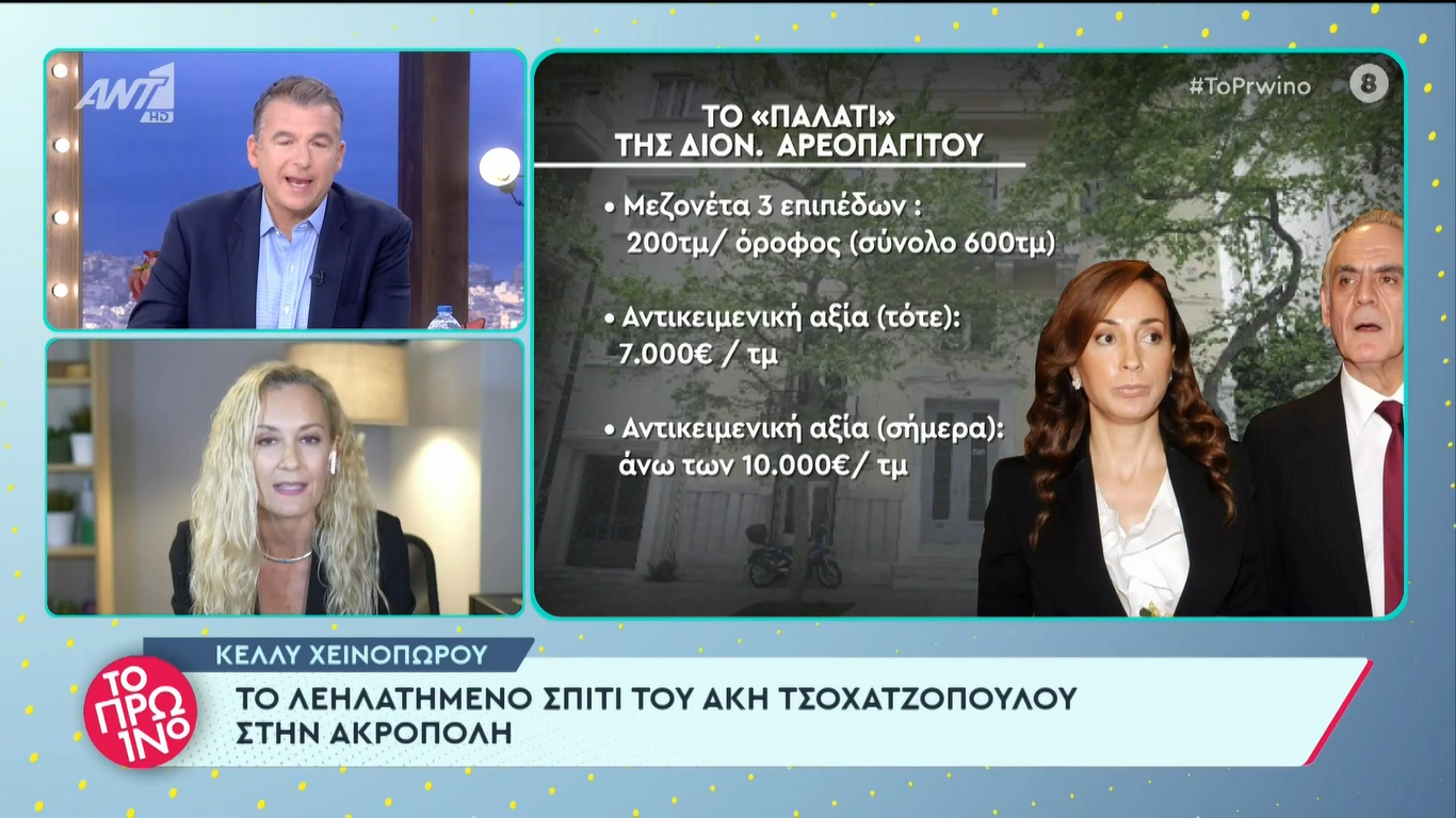 «Τον Απρίλιο του 2012 το συγκεκριμένο σπίτι είχε δεσμευτεί από το δημόσιο, όμως η Βίκυ Τσοχατζόπουλου έχει ακόμα τα κλειδιά στα χέρια της, καθώς ναι μεν απώλεσε την κυριότητα, έχει όμως την χρήση. Μέχρι να αξιοποιηθεί το συγκεκριμένο ακίνητο από το δημόσιο, θα μπορούσε να μένει μέσα», ανέφερε η δημοσιογράφος της εκπομπής Πρωινό.