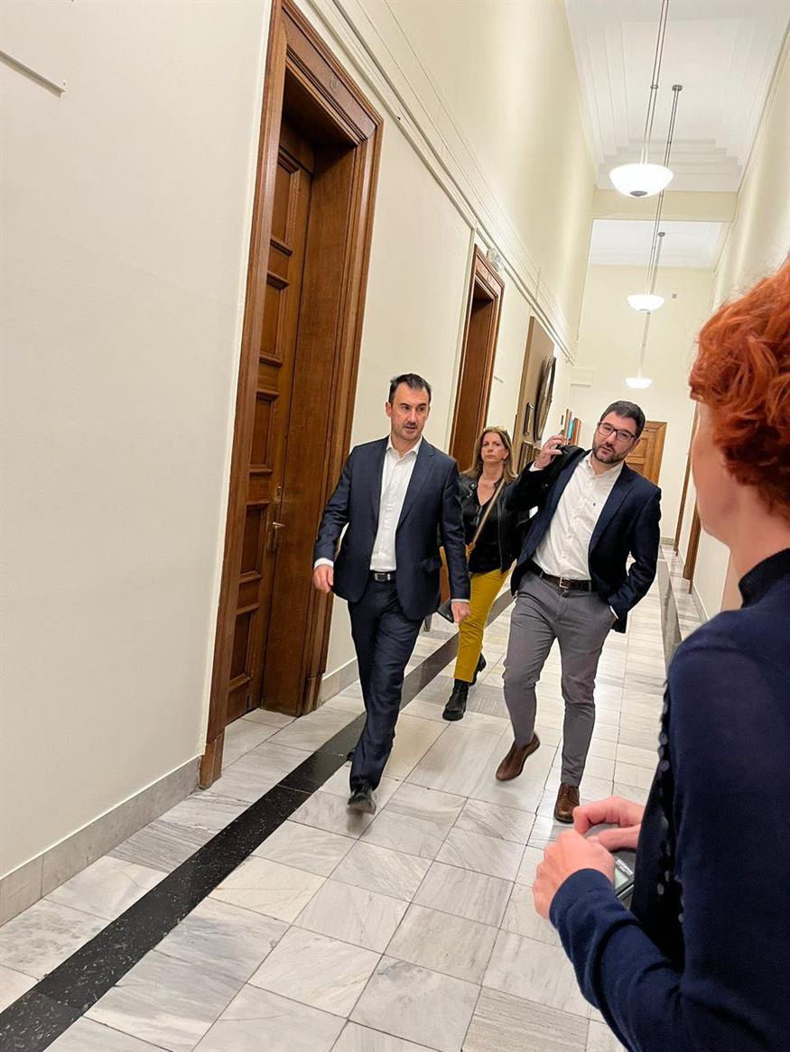 Ο Αλέξης Χαρίτσης και ο Νάσος Ηλιόπουλος έσπευσαν στο γραφείο του Κωνσταντίνου Τασούλα, για να ανακοινώσουν την αποχώρησή τους από τον ΣΥΡΙΖΑ και να προχωρήσουν στην σύσταση νέας κοινοβουλευτικής ομάδας με βουλευτές ανήκοντες στην περίφημη «ομάδα Αχτσιόγλου».
