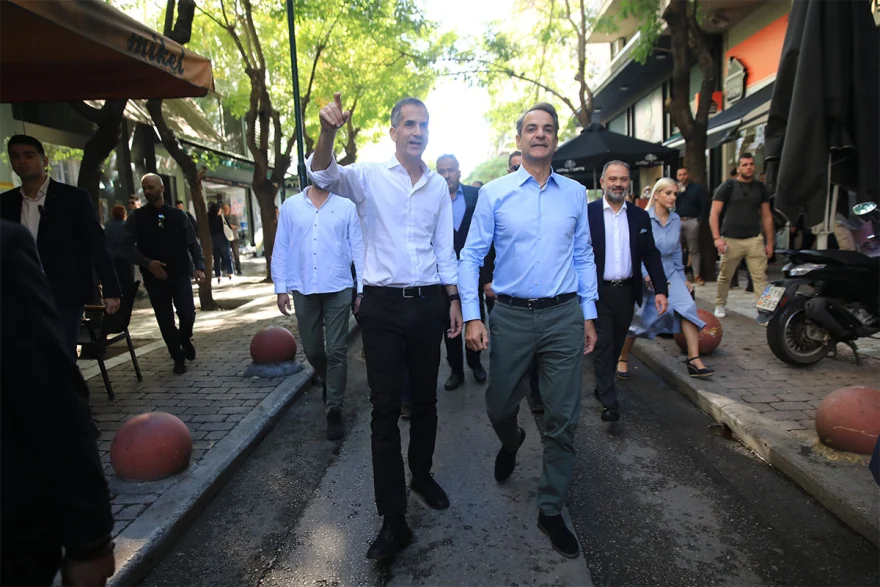 Ο πρωθυπουργός Κυριάκος Μητσοτάκης έκανε πρωινή βόλτα στο κέντρο της Αθήνας με τον υποψήφιο δήμαρχο Αθηναίων, Κώστα Μπακογιάννη.