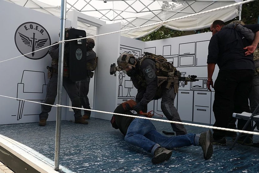 Το σενάριο της άσκησης περιελάμβανε τη διάσωση δυο ομήρων και την εξουδετέρωση δυο τρομοκρατών εντός κτιρίου.