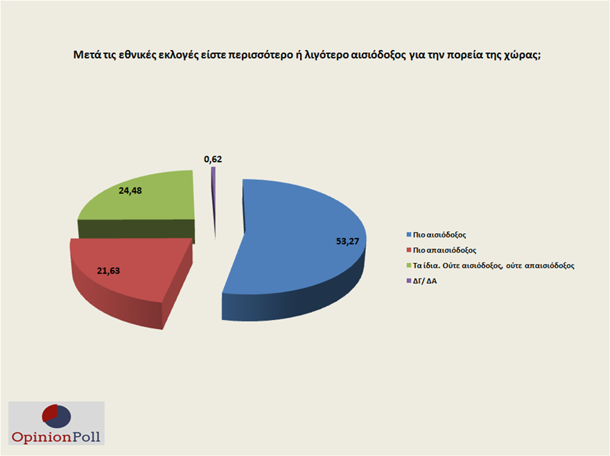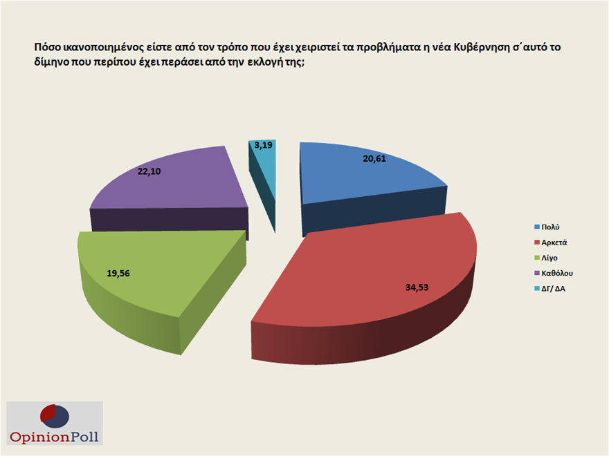 Ο βαθμός ικανοποίησης από το κυβερνητικό έργο του διμήνου κυμαίνεται στο 55%, η έκφραση αισιοδοξίας φτάνει στο 53%!