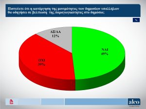 Σύμφωνα με τη δημοσκόπηση της Alco, το 61% των πολιτών δήλωσε πως δεν πιστεύει ότι θα τιμωρηθούν όσοι εμπλέκονται στο σκάνδαλο με τις επιδοτήσεις του ΟΠΕΚΕΠΕ.