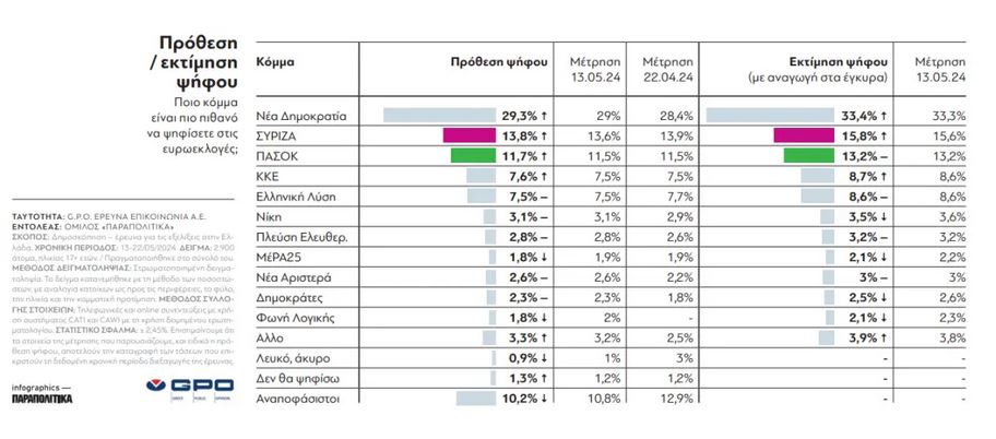 Αντίθετα, στην πρόθεση ψήφου τα ποσοστά διαφέρουν…