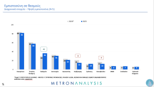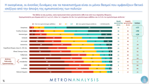 Σε εντελώς άλλο κλίμα, αρνητικό ισοζύγιο ως προς τον δείκτη εμπιστοσύνης έχουν η κυβέρνηση, οι τράπεζες, το Κοινοβούλιο, τα ΜΜΕ, τα συνδικάτα και συνολικά τα πολιτικά κόμματα.
