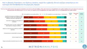 Χαρακτηριστικό είναι ότι υψηλό αρνητικό ισοζύγιο έχει ο έλεγχος της εξουσίας και λογοδοσία στους πολίτες, η ισότητα ευκαιριών για όλους και η αντικειμενικότητα και αμεροληψία της δικαιοσύνης.