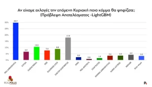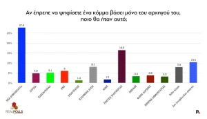 Συγκεκριμένα, το 26% των ερωτηθέντων δηλώνει προτίμηση στη Νέα Δημοκρατία, ενώ η Πλεύση Ελευθερίας ακολουθεί με 14,2%.