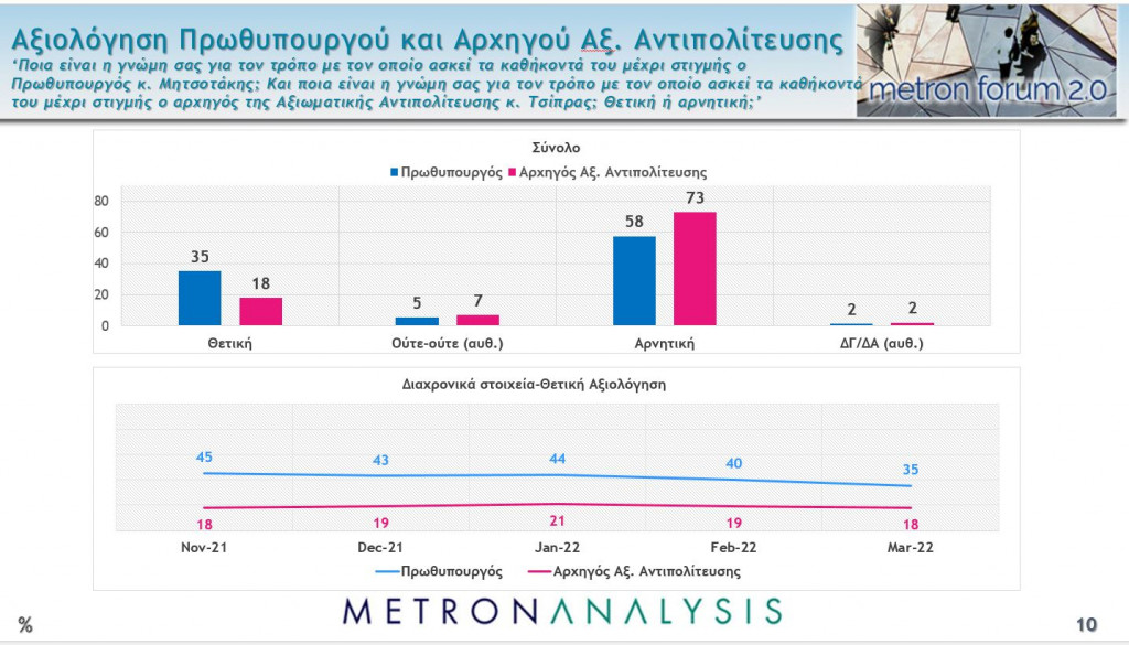 Η έρευνα που έγινε την περίοδο 16-21 Μαρτίου σε 1.304 άτομα, καταγράφει και τις απόψεις τους σε μια χρονική περίοδο όπου οι ανατιμήσεις σε βασικά προϊόντα και στην ενέργεια είχαν ξεκινήσει.