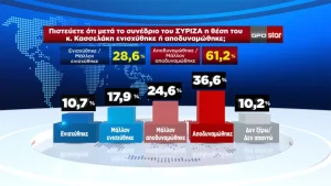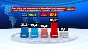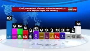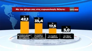 Το 42,1% θέλει στις ευρωεκλογές να στείλει μήνυμα αποδοκιμασίας στην κυβέρνηση, το 35,4% να στηρίξει το κόμμα που συνήθως επιλέγει και το 17,5% να στηρίξει την κυβέρνηση.
