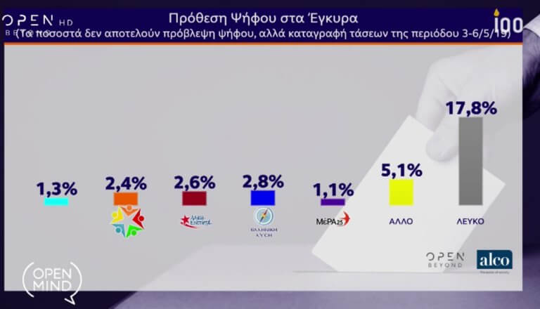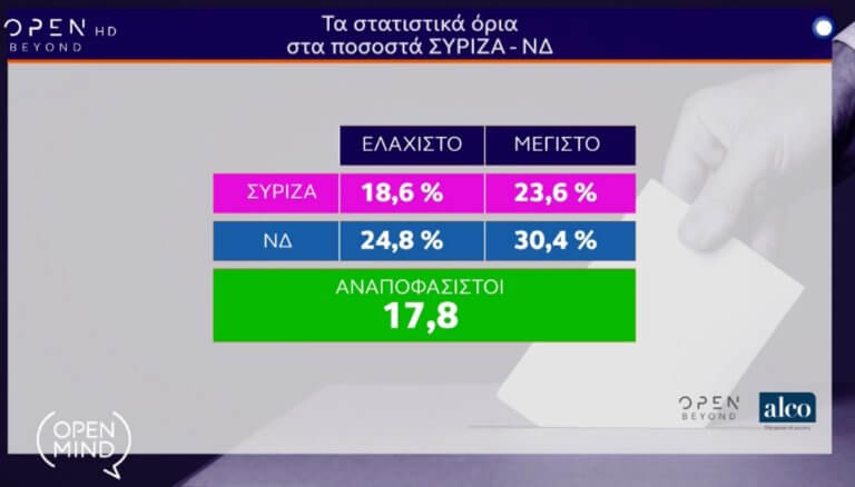 Την ίδια ώρα, πάντως κι ενώ δημοσκόπηση παρουσίασε απόψε και το κεντρικό δελτίο ειδήσεων του Star, το Open παρουσίασε την… δική του, η οποία -όπως και κάθε άλλη- έχει ιδιαίτερο ενδιαφέρον.