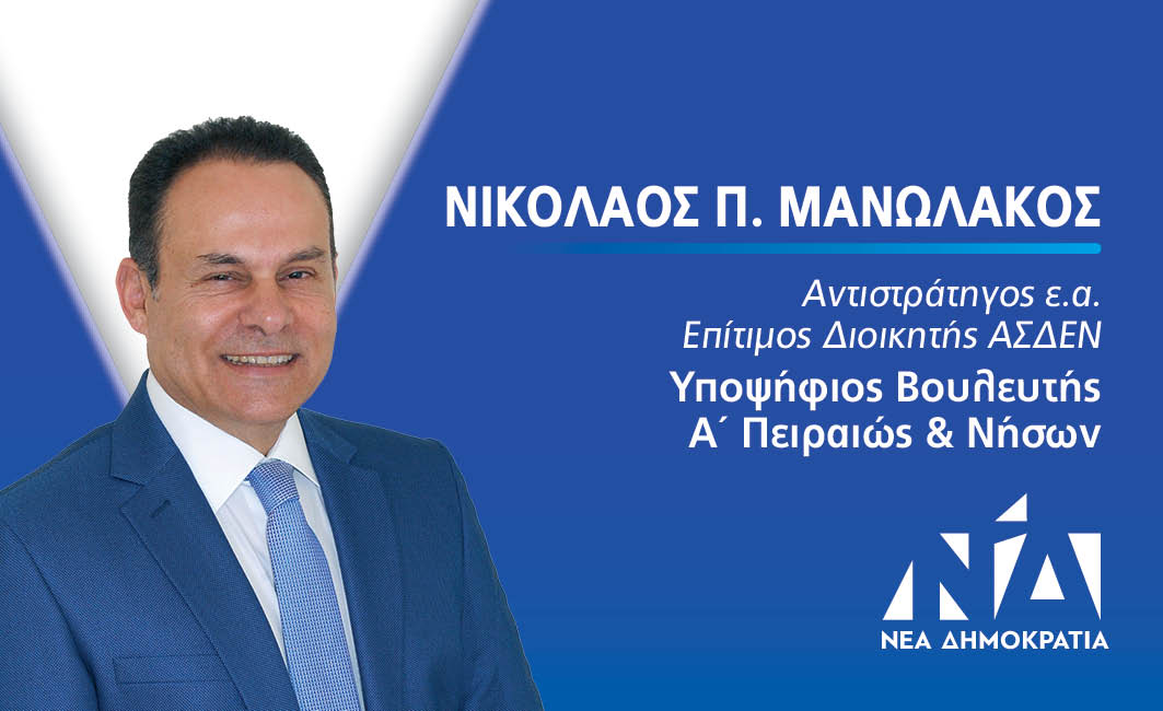 Την σημαντική υποψηφιότητα, αυτή, του Στρατηγού Νικόλαου Μανωλάκου, στην εκλογική περιφέρεια της Α’ Πειραιώς και Νήσων, ανακοίνωσε η Νέα Δημοκρατία.
