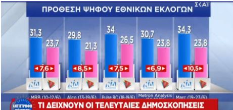 Ας δούμε το σχετικό πίνακα τις πιο «φρέσκες» δημοσκοπήσεις των 5 μεγαλύτερων εταιρειών που συμμετέχουν στο exit poll: