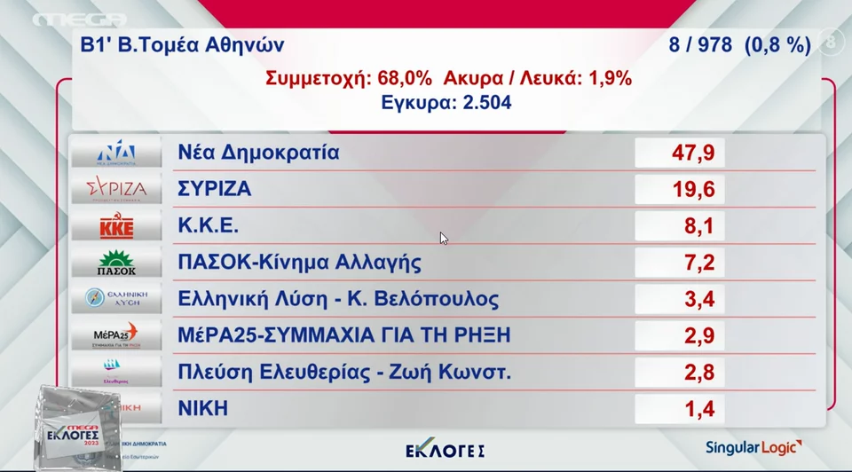 Δημοσιεύθηκαν τα πρώτα αποτελέσματα από μία από τις πιο κρίσιμες περιφέρειες στην Ελλάδα, αυτή της Α’ Αθηνών, αλλά και σε Δυτικό και Βόρειο Τομέα.
