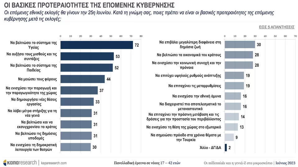 Για τις ηλικίες 17-42 οι βασικές προτεραιότητες της επόμενης κυβέρνησης μετά τις εκλογές της 25ης Ιουνίου θα πρέπει να είναι: