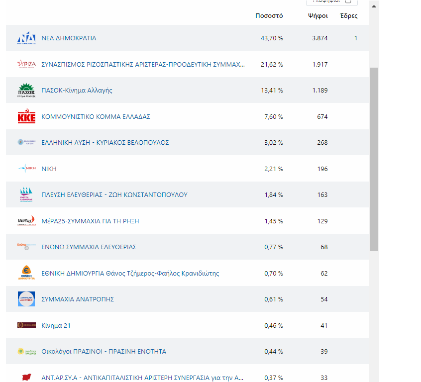 Τα αποτελέσματα των εκλογών στη Σάμο