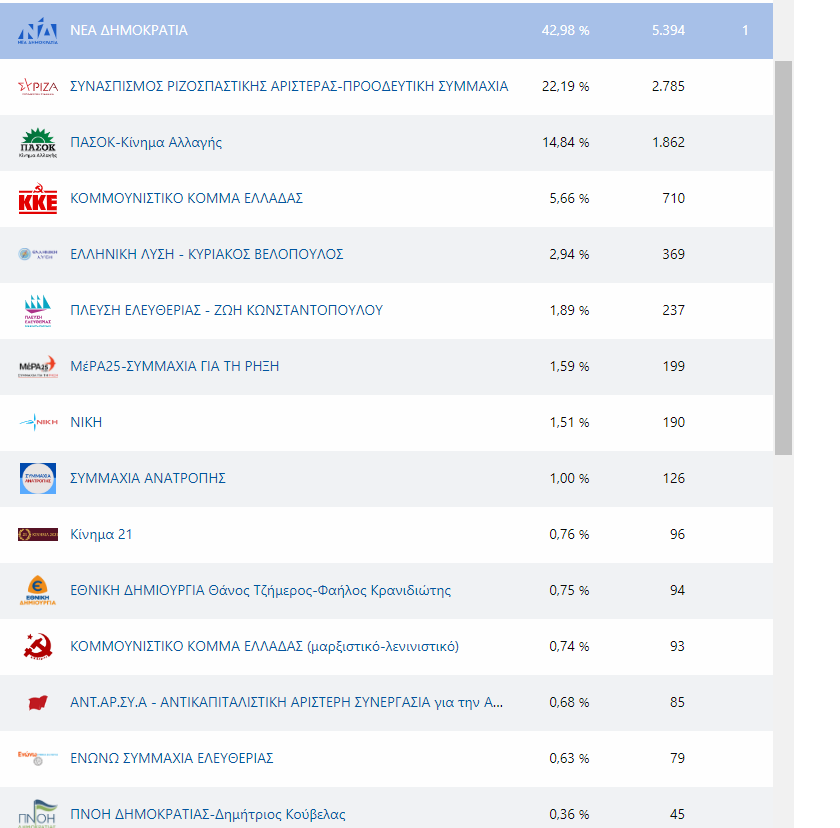 Τα αποτελέσματα των εκλογών στη Θεσπρωτία