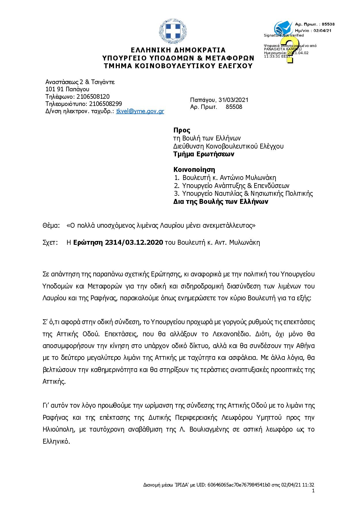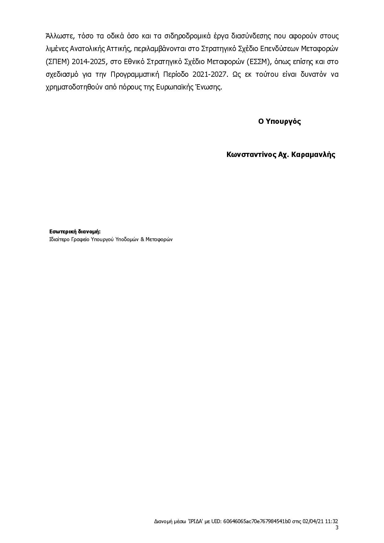 Η απάντηση του υπουργού Υποδομών και Μεταφορών, Κωνσταντίνου Αχ. Καραμανλή:
