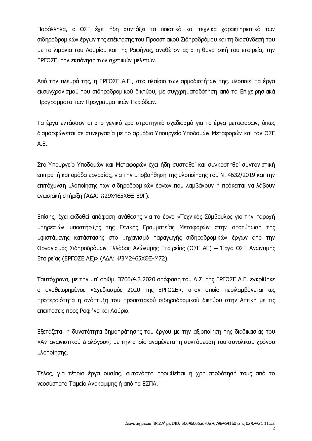 με τα λιμάνια του Λαυρίου και της Ραφήνας, αναθέτοντας στη θυγατρική του εταιρεία, την ΕΡΓΟΣΕ, την εκπόνηση των σχετικών μελετών.