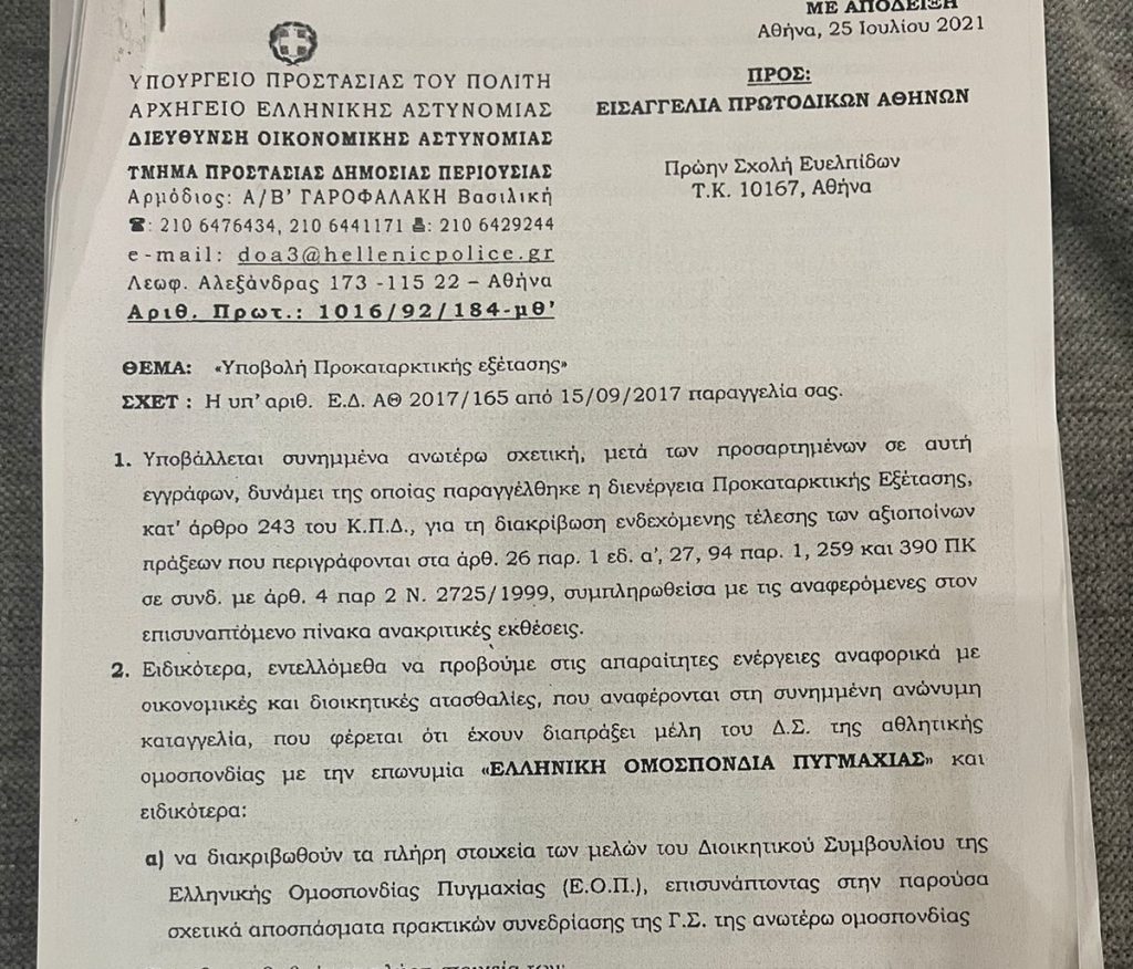 Η Οικονομική Αστυνομία φέρνει στο φως τεράστιο οικονομικό σκάνδαλο στην Ελληνική Ομοσπονδία Πυγμαχίας, κατά τη διάρκεια της διοίκησης Γαζή.