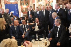 «Εμείς δεν έχουμε μυστικά και αυτό μπορεί να το δει κανείς. Ό,τι λέγεται μαθαίνεται και υπάρχει διαφάνεια στις σχέσεις μας. Είμαι διαθέσιμος για κατ’ ιδίαν συναντήσεις με τους βουλευτές – και να ξέρετε ότι στα γεύματα γίνονται ωραίες ζυμώσεις», τόνισε ο πρωθυπουργός.