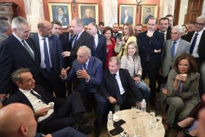 «Εμείς δεν έχουμε μυστικά και αυτό μπορεί να το δει κανείς. Ό,τι λέγεται μαθαίνεται και υπάρχει διαφάνεια στις σχέσεις μας. Είμαι διαθέσιμος για κατ’ ιδίαν συναντήσεις με τους βουλευτές – και να ξέρετε ότι στα γεύματα γίνονται ωραίες ζυμώσεις», τόνισε ο πρωθυπουργός.