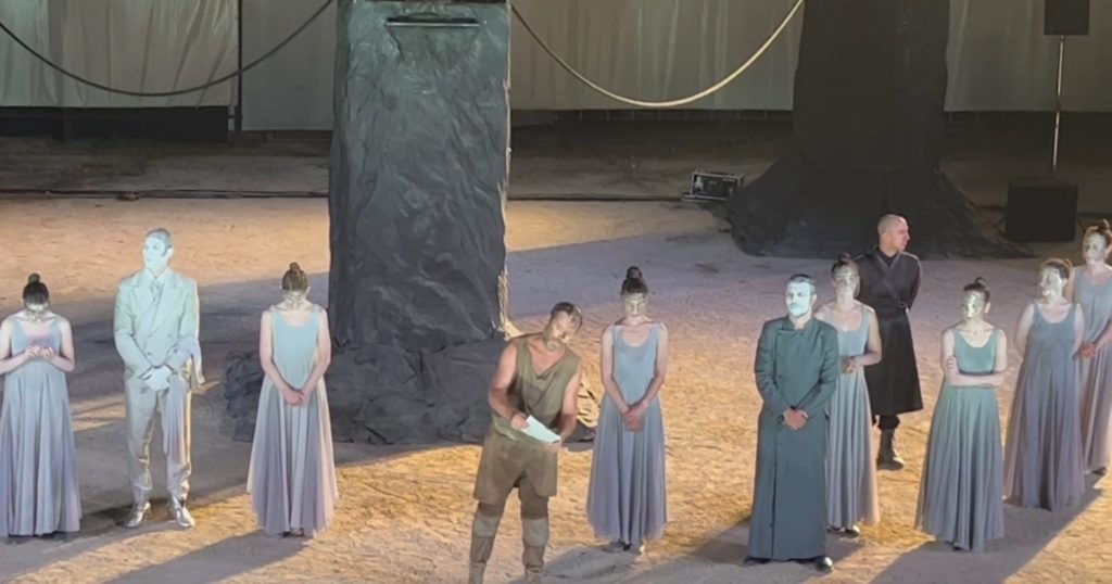 Συγκεκριμένα, στο τέλος της παράστασης αρχαίου δράματος, του «Προμηθέα Δεσμώτη» στο αρχαίο θέατρο Διου, οι συντελεστές της δια στόματος Γιάννη Στάνκογλου απαίτησαν τα αυτονόητα «δικαιώματα στην Αλήθεια, στη Δικαιοσύνη και την Κοινή Λογική, ειδικά όταν μιλάμε για ένα ποινικό αδίκημα, όπως είναι ο βιασμός ανηλίκου…επιθυμούμε να θέσουμε τον προβληματισμό ενώπιον όλων σας», και στη συνέχεια ενημερώνοντας το κοινό της παράστασης σχετικά με την καταδίκη Λιγνάδη.