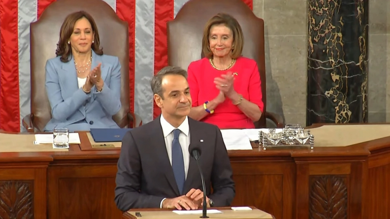 Κάτι τέτοιες ώρες μας έρχεται στο μυαλό η φωτογραφία από την ομιλία του Κυριάκου Μητσοτάκη στο Κογκρέσο, επειδή είχε κηρύξει (μόνος του… ) τον πόλεμο στη Ρωσία και η νυν αντιπρόεδρος και μεγάλη ηττημένη των εκλογών Κ.Χάρις, όπως και η πρώην πρόεδρος της Βουλής των Αντιπροσώπων Νάνσι Πελόζι, τον χειροκροτούσαν ένθερμα.