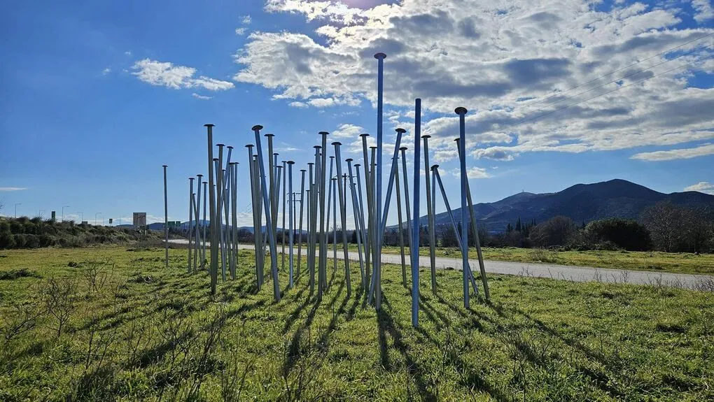Σημειώνεται πως το έργο του, αποτελούνταν από 58 μεταλλικούς σωλήνες ύψους 2-2,5 μέτρων.