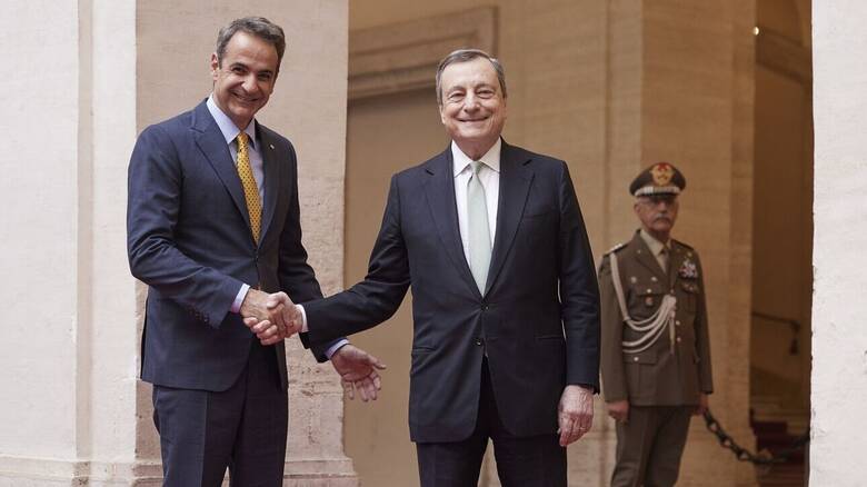 Ο πρωθυπουργός Κυριάκος Μητσοτάκης συναντήθηκε νωρίτερα σήμερα με τον πρωθυπουργό της Ιταλίας Μάριο Ντράγκι, στο Palazzo Chigi στη Ρώμη.