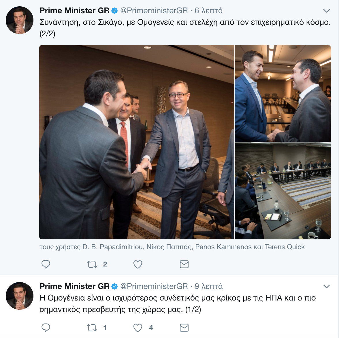Ο πρωθυπουργός, Αλέξης Τσίπρας, βρίσκεται από χθες στις ΗΠΑ και συγκεκριμένα στο Σικάγο όπου είχε δείπνο εργασίας με φορείς της ομογένειας, επιχειρηματίες και επενδυτές.