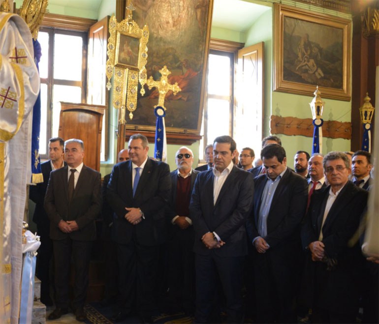 Ο Αλέξης Τσίπρας παρακολούθησε την Ακολουθία του «Μεγάλου Αγιασμού», στον Ιερό Μητροπολιτικό Ναό Σωτήρος Χριστού – Αμέσως μετά μετέβη στον χώρο ρίψεως του Τιμίου Σταυρού για τον «Καθαγιασμό των Υδάτων» όπου έστειλε μήνυμα ελπίδας για όλους τους Έλληνες
