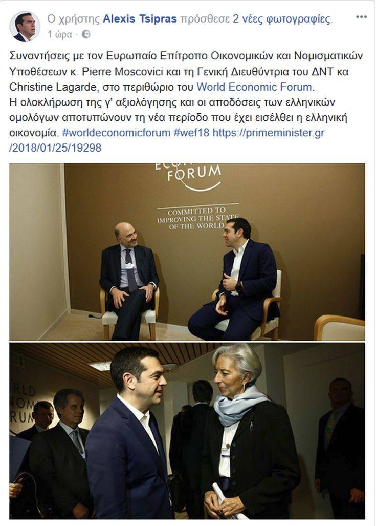 Με ανάρτηση στο Facebook, ο πρωθυπουργός Αλέξης Τσίπρας σχολίασε τα τεκταινόμενα στο Νταβός.