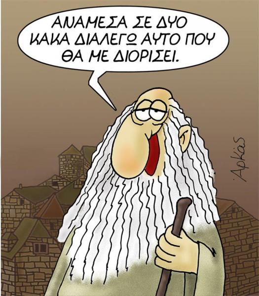Στο νέο σκίτσο παρουσιάζεται ο… γνωστός σε όλους μας προφήτης, ο οποίος λέει χαρακτηριστικά: Aνάμεσα σε δύο κακά διαλέγω αυτό που θα με διορίσει».