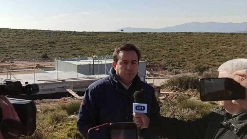 Ο υπουργός Μετανάστευσης και Ασύλου κ. Νότης Μηταράκης συνομιλεί με πολίτες έξω από τη νέα δομή μεταναστών στη θέση Ζερβού