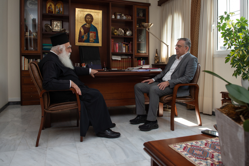 Ο υπουργός Εσωτερικών συνομίλησε και με τον Μητροπολίτη Συμεών για τα προβλήματα που αντιμετώπισε η Εκκλησία εν μέσω της πανδημίας καθώς, λόγω της μη λειτουργίας των ναών, ήταν δύσκολη η στήριξη στους πολίτες που είχαν ανάγκη.