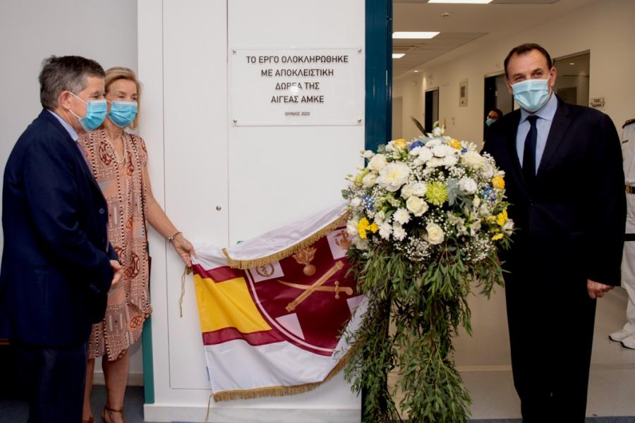 Το έργο ολοκληρώθηκε με αποκλειστική δωρεά της Αστικής Μη Κερδοσκοπικής Εταιρείας «Αιγέας». «Είμαστε ευτυχείς που διαπιστώνουμε ότι αυτό δεν συντελείται μόνο χάρη στις δικές μας δυνάμεις, αλλά και χάρη στην ευγενική και διακριτική -πάρα πολλές φορές συνήθως, έτσι είναι- προσφορά επιφανών Ελλήνων. Σήμερα λοιπόν, έχοντας ως βασικό πυλώνα το προσωπικό, τη μέριμνα για αυτό, και την εξασφάλιση των καλύτερων παροχών στο τομέα της Υγείας, εγκαινιάζουμε την πλήρη μετατροπή και ανακατασκευή του χώρου, του πρώην Εστιατορίου Αξιωματικών στον έκτο όροφο του 401 ΓΣΝΑ, σε θαλάμους κλινικής με αποκλειστική δωρεά του κυρίου Αθανάσιου Μαρτίνου», εξήγησε ο υπουργός Εθνικής Αμύνης.
