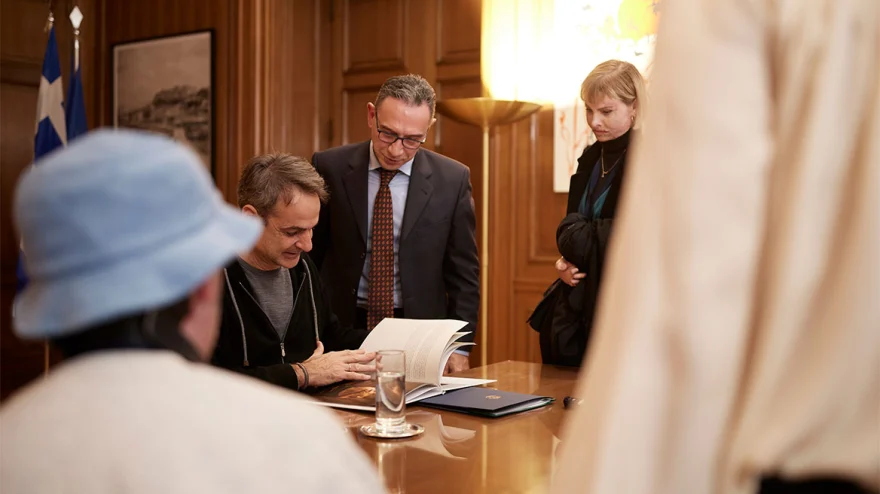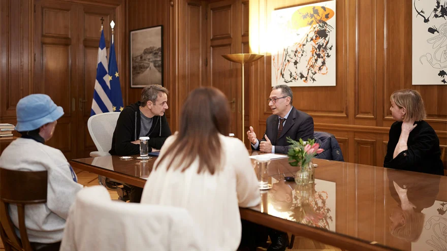 Συνάντηση στο Μέγαρο Μαξίμου με τις εγκαυματίες Βικτώρια Αντόνοβα και Αντριέλα Γκιόκα και με τους συνιδρυτές της Ελληνικής Οργάνωσης για το Έγκαυμα και τους Εγκαυματίες «Salvia», Αλέξανδρο Ανδρονόπουλο και Μαρίνα Καρύδα, είχε ο πρωθυπουργός Κυριάκος Μητσοτάκης, με αφορμή την Πανελλήνια Ημέρα Πρόληψης Εγκαυμάτων.