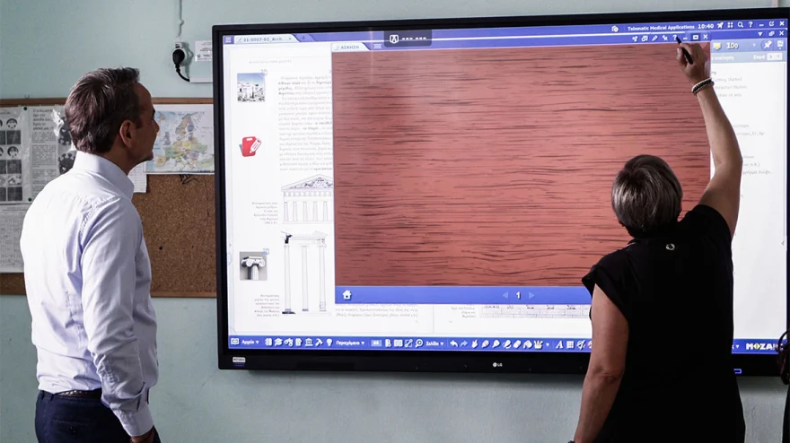 Όπως έχει δεσμευτεί ο πρωθυπουργός, μέσα ένα χρόνο όλα τα σχολεία, όλες οι τάξεις από την Ε’ Δημοτικού και πάνω, θα έχουν διαδραστικούς πίνακες, μια αλλαγή που θα γίνει με πόρους του Ταμείου Ανάκαμψης.