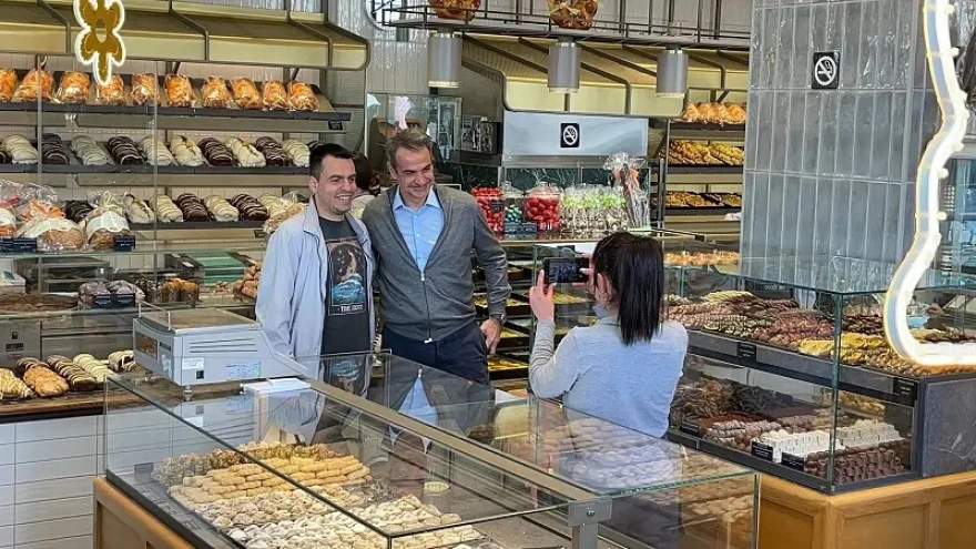 Εκεί, ο πρωθυπουργός αγόρασε τα αγαπημένα του τσουρέκια και έβγαλε φωτογραφία με πελάτη του καταστήματος, για να αναχωρήσει αργότερα για την Πολίχνη.