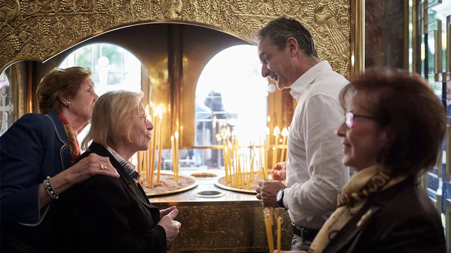 Στον ιερό ναό Αγίου Κωνσταντίνου και Ελένης στη Θεσσαλονίκη βρέθηκε σήμερα ο Κυριάκος Μητσοτάκης, με αφορμή τη σημαντική σημερινή εορτή.