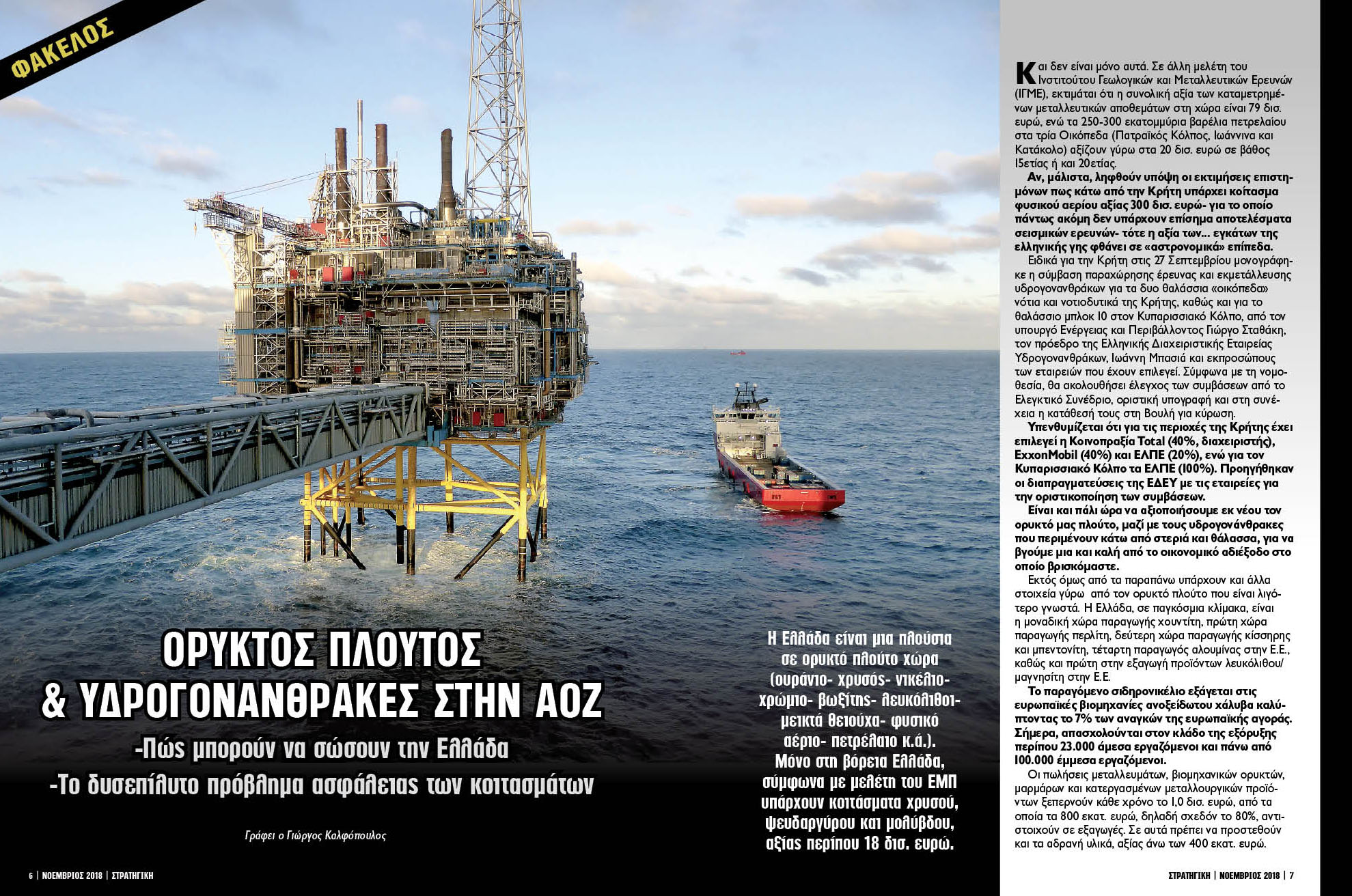 Με βασικό θέμα την σύγκρουση Ελλάδας και Τουρκίας στην Ανατολική Μεσόγειο για τους υδρογονάνθρακες η νέα Νοεμβρίου ΣΤΡΑΤΗΓΙΚΗ που κυκλοφορεί σε όλη την Ελλάδα επιχειρεί να δώσει μια απάντηση στο υπαρξιακά κρίσιμο ερώτημα αν η Ελλάδα μπορεί να υπερασπίσει, ακόμα και με χρήση των όπλων, τα δικαιώματά της απέναντι σε μία Τουρκία που μεταμορφώνεται σε μία πανίσχυρη στρατιωτικά χώρα και είναι «διψασμένη» για ενέργεια και ορυκτό πλούτο.
