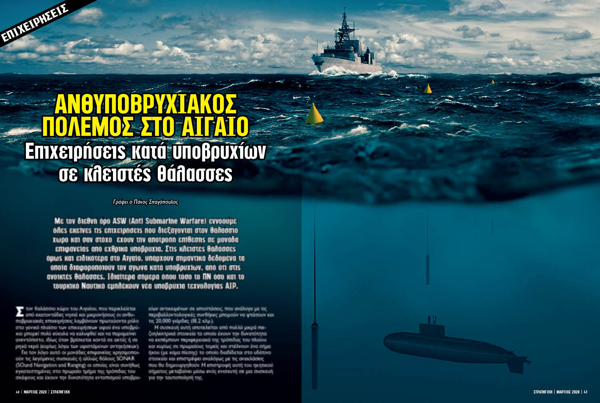 Στις κλειστές θάλασσες όμως και ειδικότερα στο Αιγαίο, υπάρχουν σημαντικά δεδομένα τα οποία διαφοροποιούν τον αγώνα κατά υποβρυχίων, από ότι στις ανοικτές θάλασσες. Ιδιαίτερα σήμερα όπου τόσο το ΠΝ όσο και το τουρκικό Ναυτικό εμπλέκουν νέα υποβρύχια τεχνολογίας AIP.