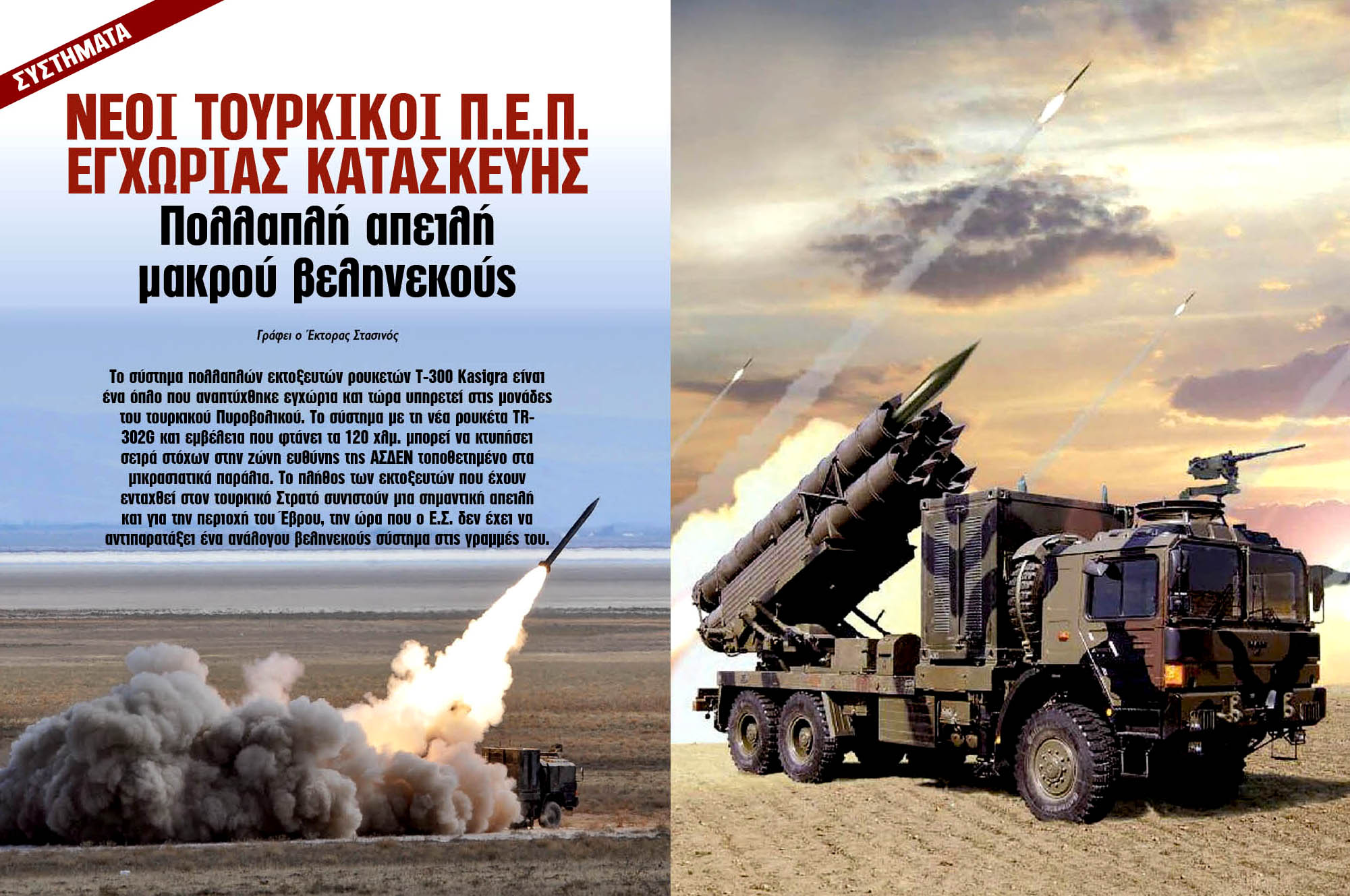 Το σύστημα πολλαπλών εκτοξευτών ρουκετών T-300 Kasigra είναι ένα όπλο που αναπτύχθηκε εγχώρια και τώρα υπηρετεί στις μονάδες του τουρκικού Πυροβολικού. Το σύστημα με τη νέα ρουκέτα TR-302G και εμβέλεια που φτάνει τα 120 χλμ. μπορεί να κτυπήσει σειρά στόχων στην ζώνη ευθύνης της ΑΣΔΕΝ τοποθετημένο στα μικρασιατικά παράλια. Το πλήθος των εκτοξευτών που έχουν ενταχθεί στον τουρκικό Στρατό συνιστούν μια σημαντική απειλή και για την περιοχή του Έβρου, την ώρα που ο Ε.Σ. δεν έχει να αντιπαρατάξει ένα ανάλογου βεληνεκούς σύστημα στις γραμμές του.