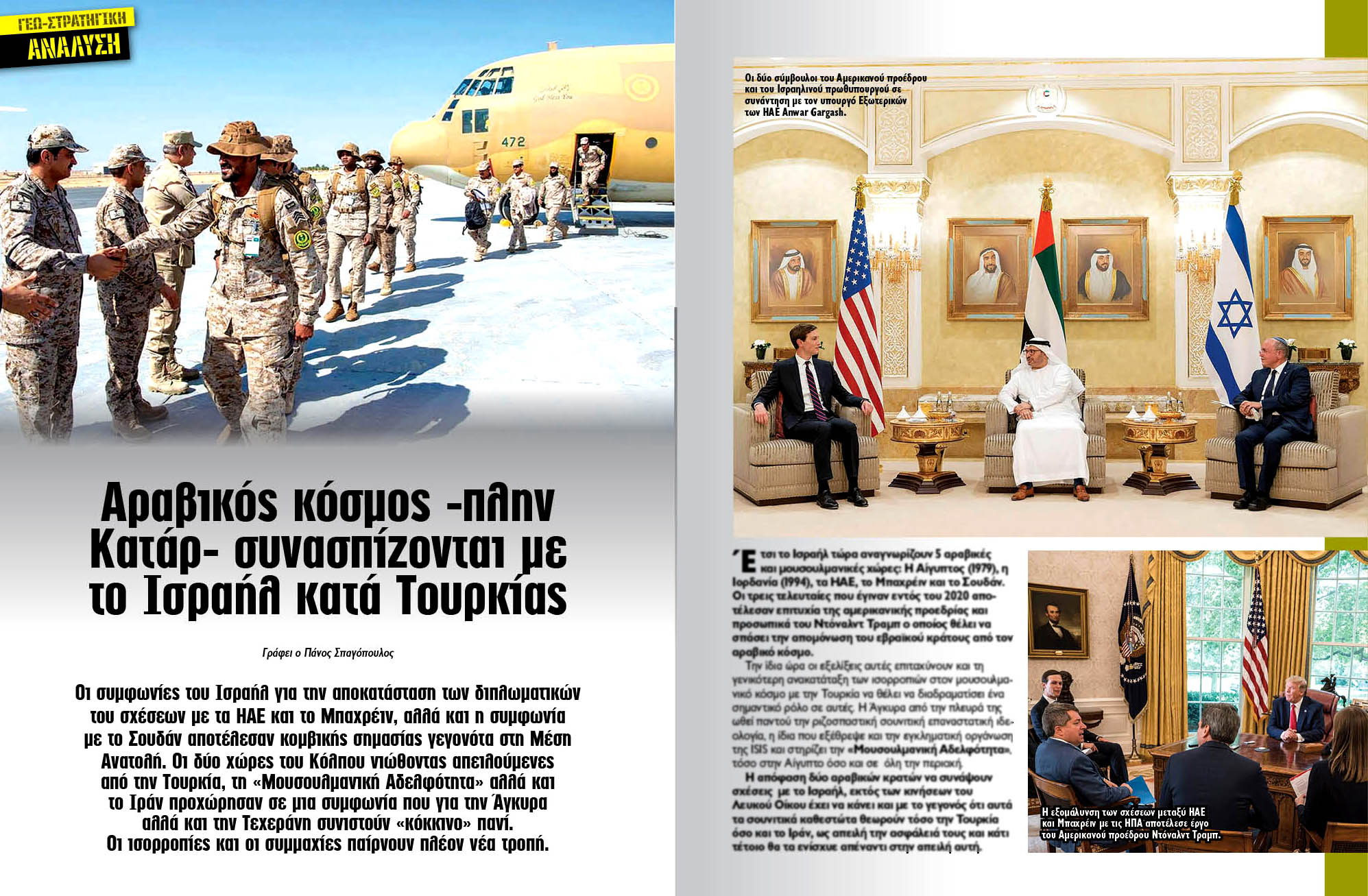 Οι συμφωνίες του Ισραήλ για την αποκατάσταση των διπλωματικών του σχέσεων με τα ΗΑΕ και το Μπαχρέιν, αλλά και η συμφωνία με το Σουδάν αποτέλεσαν κομβικής σημασίας γεγονότα στη Μέση Ανατολή. Οι δύο χώρες του Κόλπου νιώθοντας απειλούμενες από την Τουρκία, τη «Μουσουλμανική Αδελφότητα» αλλά και το Ιράν προχώρησαν σε μια συμφωνία που για την Άγκυρα αλλά και την Τεχεράνη συνιστούν «κόκκινο» πανί. Οι ισορροπίες και οι συμμαχίες παίρνουν πλέον νέα τροπή.