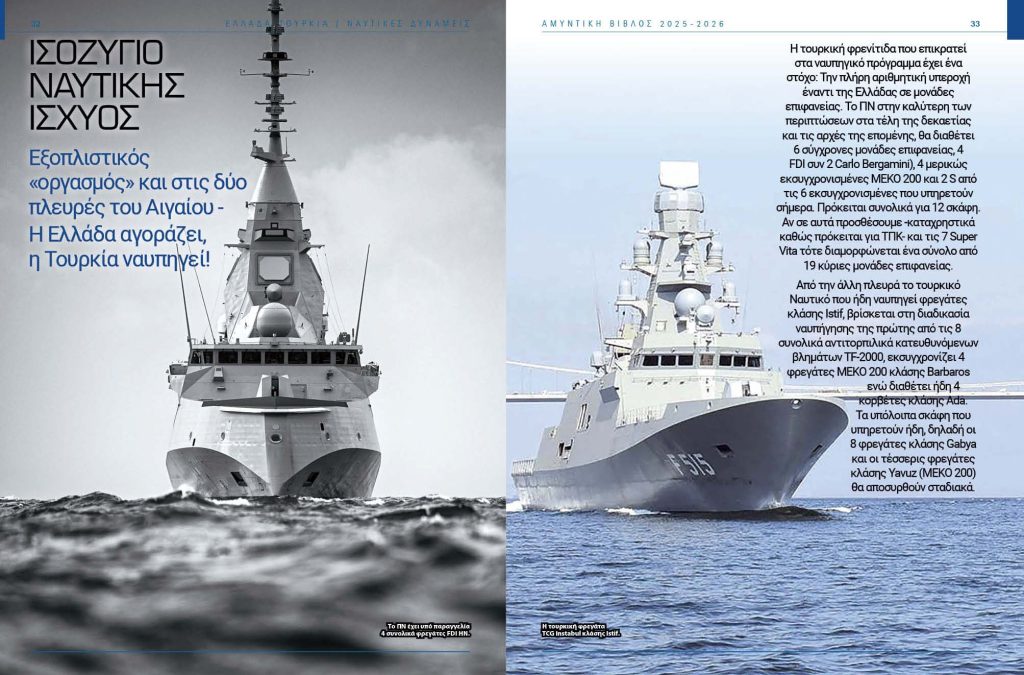 Η «ΑΜΥΝΤΙΚΗ ΒΙΒΛΟΣ 2025-2026», η μοναδική ετήσια έκδοση για το ισοζύγιο ένοπλης ισχύος Ελλάδας-Τουρκίας και Κύπρου, κυκλοφορεί πλήρως ανανεωμένη σε όλη την Ελλάδα με τον «Ελεύθερο Τύπο της Κυριακής».
